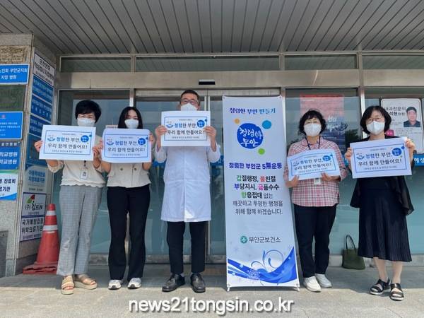 뉴스21통신전북/김문기기자=부안군 보건소는 지난 14일 혜성병원(원장 주세혁)과 ‘깨끗하고 투명한 행정, 청렴한 부안을 만들기 위한 청렴협렵체 릴레이 캠페인’을 실시했다.
