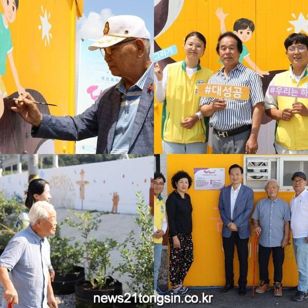 이에 봉사단은 이제는 추억이 된 어릴 적 꿈 하나하나를 모아 행복했던 그 시절 이야기로 하나가 되고 벽화를 보는 누구나 인생 제 2막, 희망의 꽃을 피우길 응원하는 메시지를 벽화에 담았다.