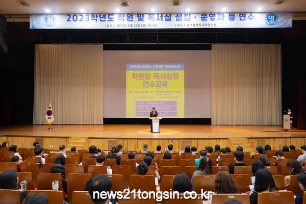 광주시교육청이 20일 광주교육연수원 대강당에서 관내 학원장 1,000여 명 대상으로 학원 설립·운영자 연수를 실시했다.