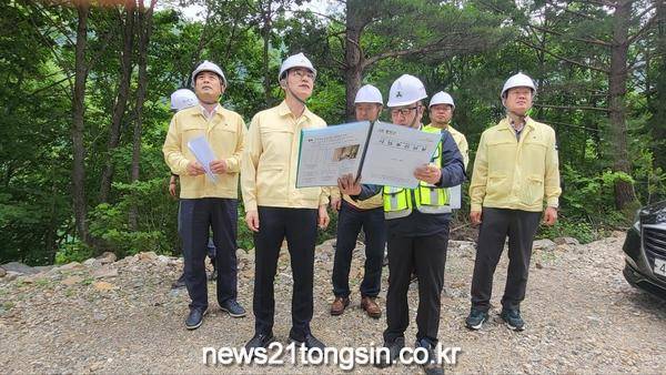 이날 평창군 수하지구 급경사지 공사현장을 방문한 김명선 부지사는 수해방지대책과 안전시설 설치현황 등을 살펴보고 우기대비 안전관리에 더욱 힘써달라는 당부와 함께 현장 직원들을 격려하였다.