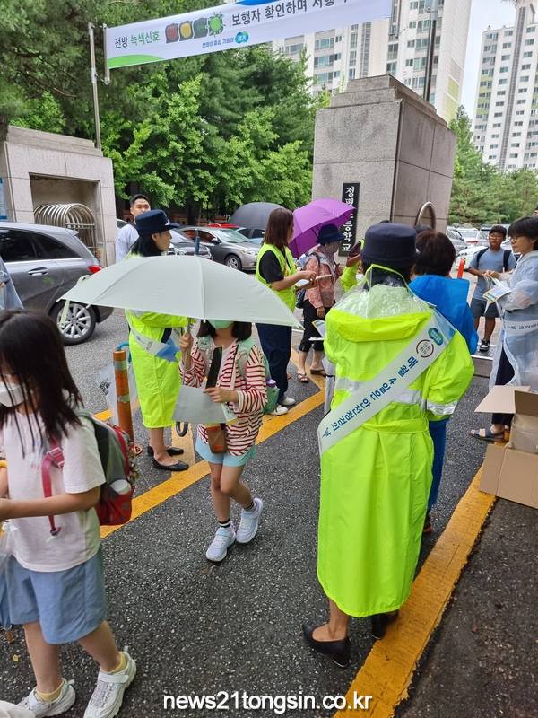 캠페인은 정평초등학교 삼거리에서 ‘전방 녹색신호 - 보행자 확인하며 서행 우회전’이라는 내용의 바뀐 차량 우회전 관련 교통안전 현수막을 활용해 홍보하고 안내문을 배부했다. 하굣길 어린이를 대상으로도 관련 안내문과 홍보 물품 등을 배부했다.