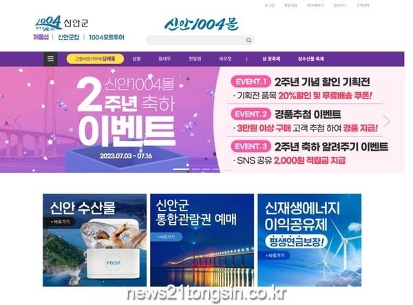 '신안1004몰' 2주년 맞이 축하이벤트로 20% 할인 기획전, 3만 원 이상 구매 시 모바일 커피쿠폰 등을 증정한다.