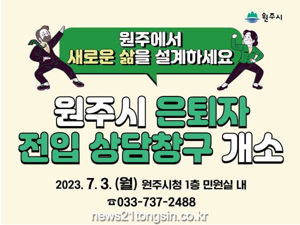 원주시가 오는 7월 3일부터 시청 1층 민원실 내에 은퇴자 전입 상담 창구를 개소한다고 밝혔다.