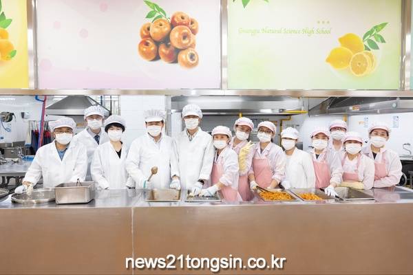 [뉴스21통신/장병기 기자] 이정선 교육감은 지난 29일 시교육청의 식중독 예방 등 급식 위생관리 강화의 일환으로 취임 1주년을 맞아 광주자연과학고등학교를 직접 방문해 현장을 살펴보고 배식 봉사를 실시했다.