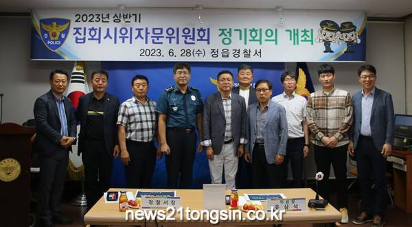 뉴스21통신전북/김문기기자=지난 6월 28일 경찰서 2층 어울마당에서 경찰서장 및 집회시위자문위원 등 12명 참석한 가운데 집회시위자문위원회 정기회의를 개최하였다.