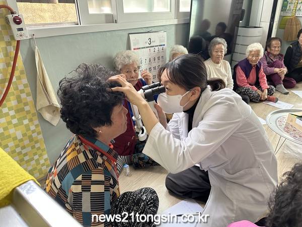 특히 혈압과 혈당 등 기초 건강검사와 만성질환 관리, 안질환 및 구강검진, 침 시술은 경로당 이용 어르신들 사이에서 큰 호응을 얻는 진료 분야이다.