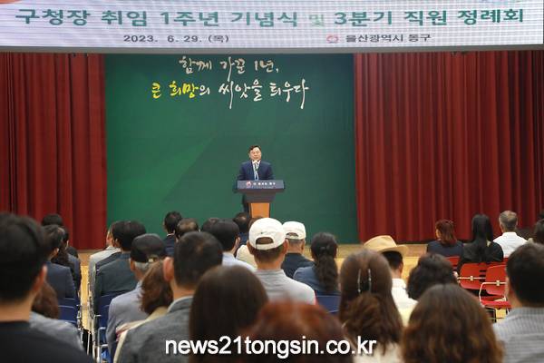 (뉴스21통신/임정훈기자) = 울산시 동구청은 6월 29일 오후 2시 동구청 2층 대강당에서 지역 주민과 직원 등 200여명이 참석한 가운데 민선8기 제9대 취임1주년 기념식을 개최했다.