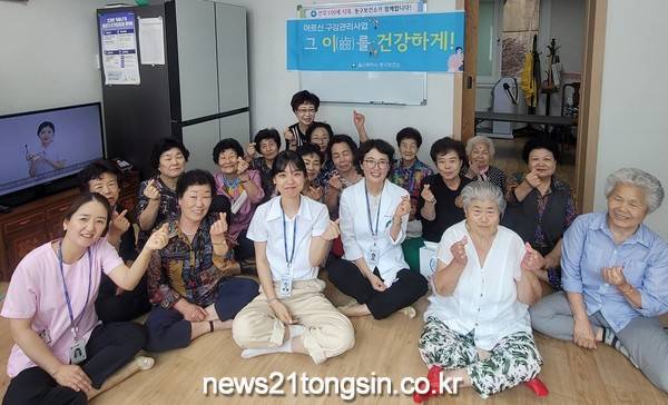 (뉴스21통신/임정훈기자) = 울산 동구보건소는 6월 29일 전하동 늘푸른아파트경로당을 방문하여 어르신 구강관리사업인 ‘그 이(齒)를 건강하게’ 사업을 실시했다.