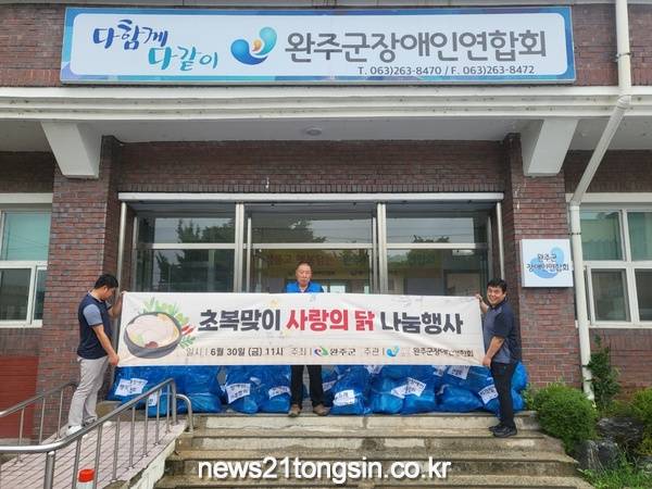[전북=뉴스21] 오충일 기자= 완주군장애인연합회 희망소리봉사단(단장 국인숙)이 닭 나눔행사를 실시했다.