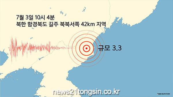 오늘(3일) 오전 10시 4분에 북한 함경북도 길주에서 규모 3.3의 지진이 발생했다.