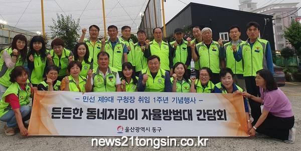 ((뉴스21통신/임정훈기자) = 울산시 동구청은 민선 제9대 구청장 취임 1주년을 맞이하여 관내 자율방범대를 대상으로 잇따라 간담회를 개최하여 생생한 현장의 소리를 듣고 있다.