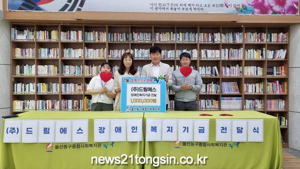 (뉴스21통신/임정훈기자) = ㈜드림에스(대표 김창규)는 발달장애인의 복지증진과 생활안전 도모를 위해 6월 30일 100만원 상당의 장애인복지기금을 동구종합사회복지관 부설 장애인주간보호센터에 쾌척했다.