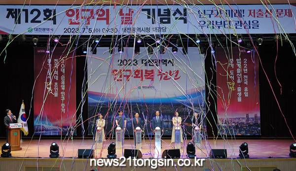 이장우 대전시장은 5일 제12회 인구의 날 기념식에 참석해, 2023년을 대전시 인구회복 원년의 해로 선포하고 그간의 성과 및 향후 인구정책에 대한 비전을 제시했다.