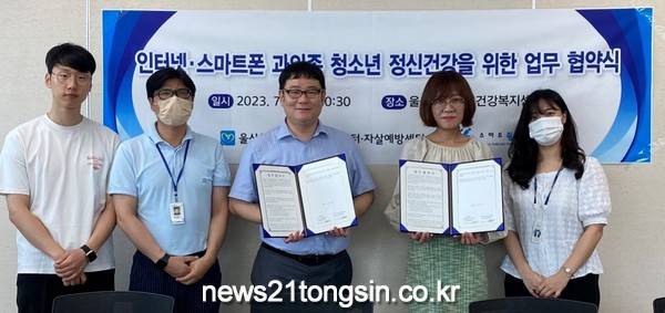 (뉴스21통신/임정훈기자) = 울산 동구 정신건강복지센터(센터장 전진용)는 아동·청소년의 스마트폰 과의존 예방관리를 위해 스마트폰 과의존 예방 전문 상담기관인 울산스마트쉼센터와 지난 7월 4일(화) 업무협약을 체결하였다.