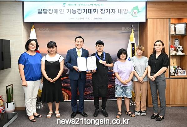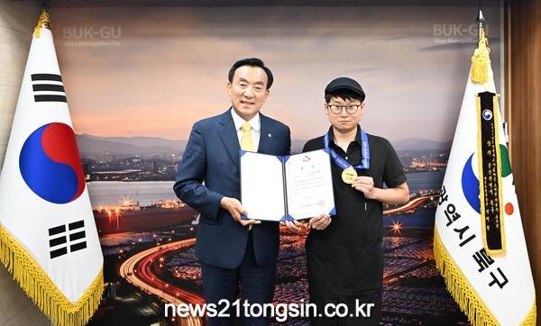 지난 5일 박천동 북구청장은 유 씨를 만나 격려하고, 수상을 축하하는 시간을 가졌다.