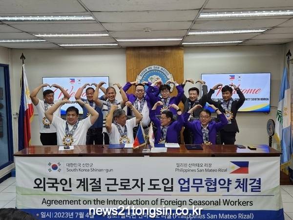 신안군은 지난 4일, 필리핀 산마테오시와 외국인 계절근로자 도입을 위한 업무협약(MOU)을 체결했다.