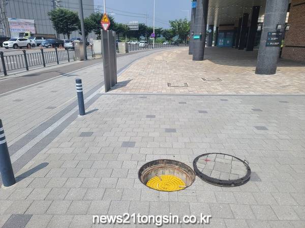 김포시는 여름철 집중호우로 발생할 수 있는 보행자 추락사고 예방을 위해 김포도시철도역 주변과 상습 침수지역에 ‘하수구 맨홀 추락 방지시설’을 설치했다.