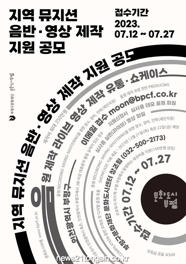 부평구(구청장 차준택) 문화도시센터가 오는 12일부터 27일까지 ‘지역 뮤지션 음반·영상 제작 지원 공모’를 진행한다.