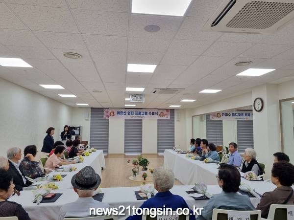 이번 수료식은 그동안 진행되었던 인지 강화 교재 활동, 작업치료, 원예치료, 음악과 미술치료, 운동치료, 함께한 봄 나들이 등 다양한 활동들이 담긴 동영상을 보며 수료 어르신들은 물론 함께 참석한 가족에게 감동과 행복을 주는 시간이었다.