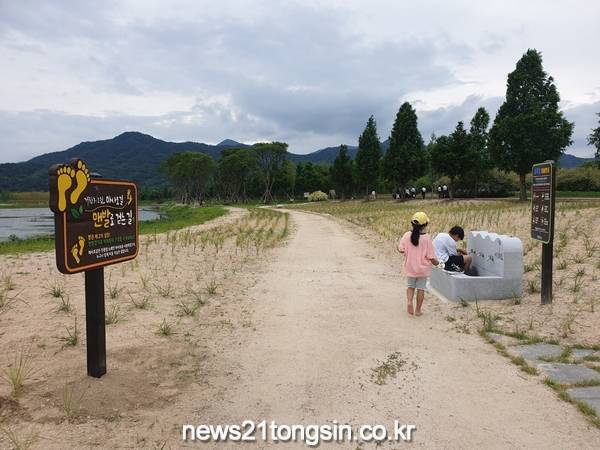 거창군은 지난 4월 거창창포원에 조성한 약 2.3km 구간의 어싱길을 다양한 연령층에서 많이 이용하고 있다고 10일 밝혔다. 어싱(Earthing)이란 지구의 치유에너지를 우리 몸으로 받아들이는 치유법의 하나로 맨발로 걷는 것을 말한다.