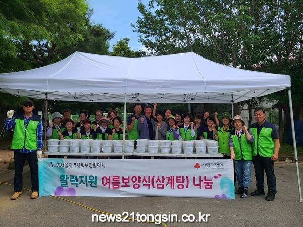 (뉴스21통신/우정석기자) = 울주군 범서읍 지역사회보장협의체(공동위원장 백문현·박공열)가 10일 범서생활체육공원에서 취약계층 대상 ‘활력지원 여름보양식(삼계탕) 나눔사업’을 진행했다.