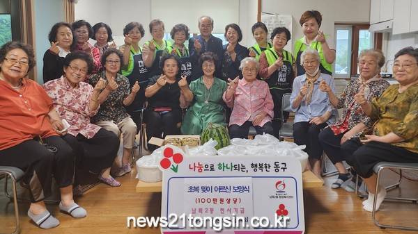 (뉴스21통신/임정훈기자) = 울산 동구 남목2동 자연보호협의회(회장 배수명)는 7월 7일 오전 11시 30분 새납마을 경로당에서 어르신 등 50세대에 삼계탕을 전달하는 행사를 가졌다.