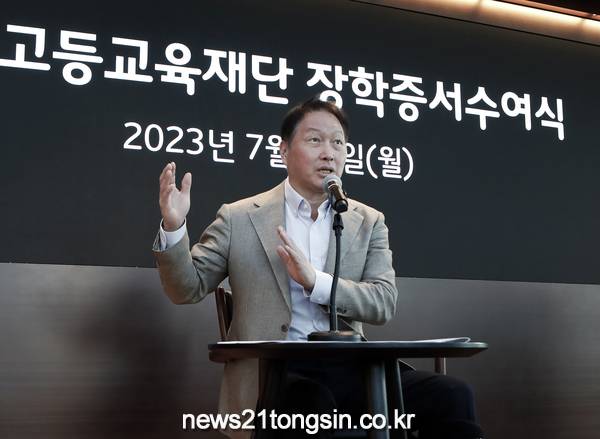한국고등교육재단은 최 회장 선친인 고(故) 최종현 선대회장이 ‘10년을 내다보며 나무를 심고, 100년을 내다보며 인재를 키운다’는 신념으로 1974년에 설립했다. 한국의 미래를 책임질 인재를 양성한다는 차원에서 재단명에도 회사 이름을 넣지 않았다.