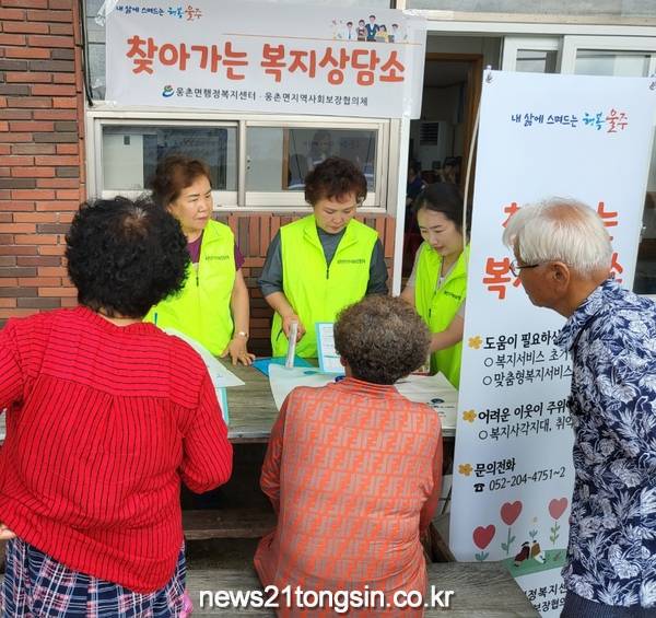 (뉴스21통신/우정석기자) = 울주군 웅촌면 지역사회보장협의체(공동위원장 박은경·김문자)가 11일 춘해보건대학교와 함께 지역 경로당 4개소(은하, 대복, 초천, 서중)에서 찾아가는 복지상담소를 운영했다.