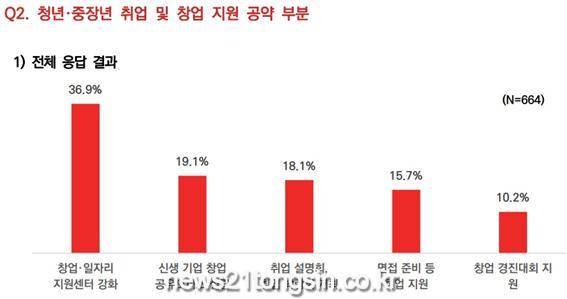 2차 여론조사는 지난달 30일부터 이달 3일까지 664명을 대상으로 상인 및 소상공인 경영 활동 지원 청년·중장년 취업 및 창업 지원 주민 재산권 보장 역사 문화유산 활용 강화 레저시설 강화 및 관광 SOC 지원 등 5개 분야 공약사업에 대해 진행됐다.