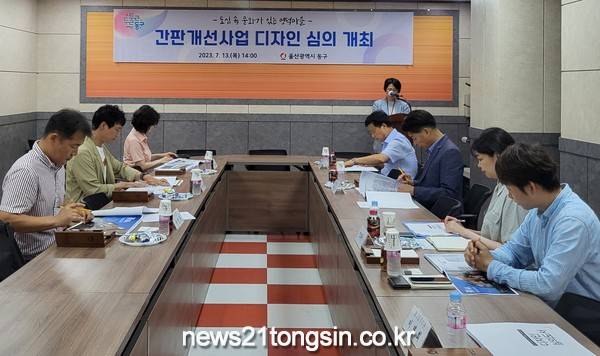 (뉴스21통신/임정훈기자) = 울산시 동구청은 7월 13일 오후 2시 동구청 2층 소회의실에서 관련전문가 및 관계 공무원, 관련 업체 등이 참석한 가운데 ‘명덕마을 간판개선사업’ 디자인 심의를 개최하였다.