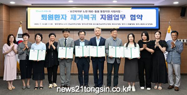 [뉴스21통신/ 장병기 기자] 광주광역시 서구가 지역 병원들과 협력체계를 구축해 퇴원환자 돌봄서비스를 제공한다. 서구는 14일 광주지역 급성기병원 및 요양병원 6개소(전남대병원, 광주보훈병원, 빛고을전남대학교병원, 해피뷰병원, 광주365재활병원, 시립제2요양병원)와 ‘퇴원환자 재가복귀 지원 업무 협약’을 체결했다.