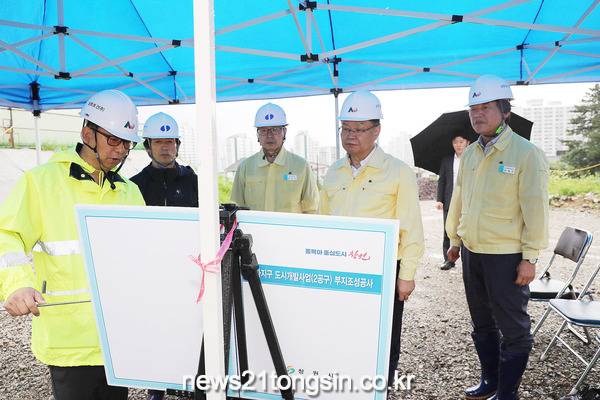 현장을 방문한 홍 시장은 하천 및 절토사면 등 공사장 내 주요 위험지역을 점검하였으며, 임시 침사지 관리 및 가배수로 정비, 사면붕괴 방지에 만전을 기하고 유사시 현장에서 즉각 대처할 수 있도록 준비를 철저히 하라고 당부했다.