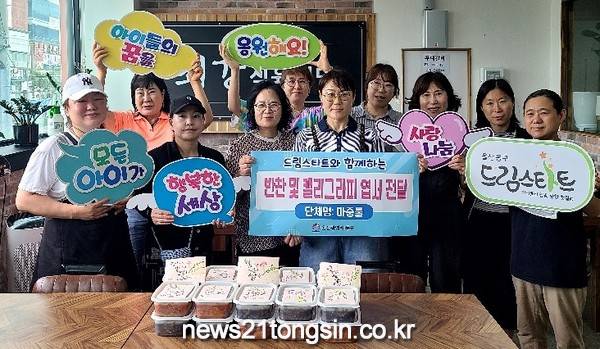 (뉴스21통신/임정훈기자) = 울산 동구 민간자원봉사단체 ‘마중물’(회장 손희숙)이 7월 14일 동구 드림스타트 대상 아동 가정 10가구에 불고기 반찬 20통을 후원하였다.