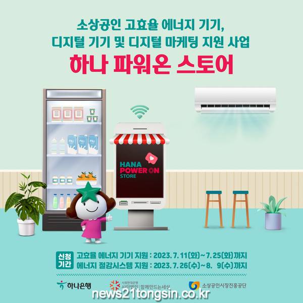 고효율 에너지 기기 지원은 7월 11일부터 7월 25일까지이며, 에너지 절감시스템 지원 분야는 7월 26일부터 8월 9일까지 모집한다. 하나 파워온 홈페이지에서 신청할 수 있다.