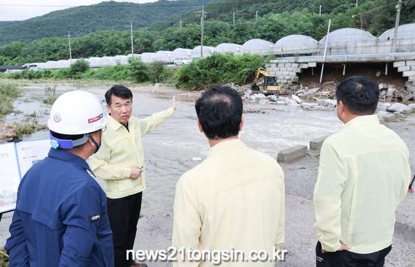 이어 이 시장은 하천 옹벽블럭 일부가 유실된 동구 삼괴동 하천을 점검하고, “긴급 복구를 신속하게 실시하고, 인명피해가 발생하지 않도록 주민 및 차량 통제를 철저하게 실시하라”고 당부했다.