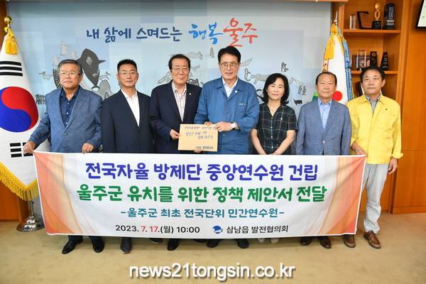 (뉴스21통신/우정석기자) = 울주군 삼남읍 발전협의회(회장 허령)가 17일 울주군청을 방문해 전국자율방재단 중앙연수원 유치를 위한 정책제안서를 전달했다.