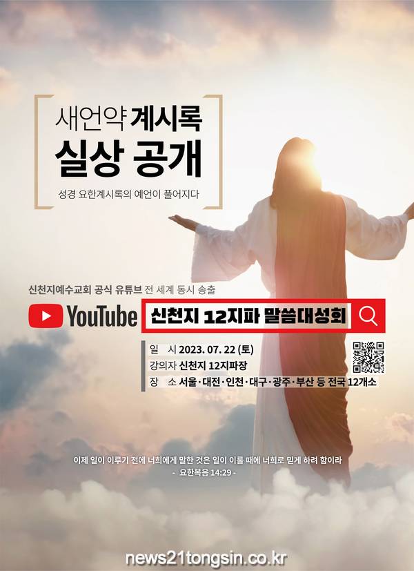 뉴스21통신전북/김문기기자=신천지예수교 증거장막성전(이하 신천지예수교회·총회장 이만희)이 상반기에 이어 또 한 번의‘신천지 12지파 말씀 대성회’를 서울과전국 대도시에서 동시 개최한다.