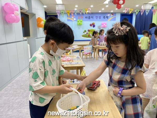 2일간 열린 축제에는 유아들이 좋아하는 장난감과 학용품, 간식류 등을 파는 장터가 열렸다. 유아들은 인성 저금통에 모아둔 동전으로 자신이 사고 싶은 물건을 샀다. 선배인 5세 유아들은 2일 동안 번갈아 가며 물건을 파는 역할을 했다.