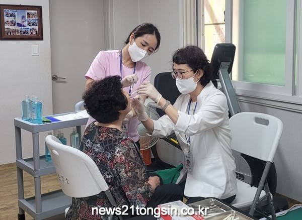 동구보건소 구강보건센터의 치과의사, 치과위생사 등 전문인력이 직접 방문해 치과방문을 힘들어 하는 어르신들을 대상으로 구강검진과 불소도포, 구강보건교육 등 다양한 구강 관리 서비스를 제공해 큰 호응을 얻었다.