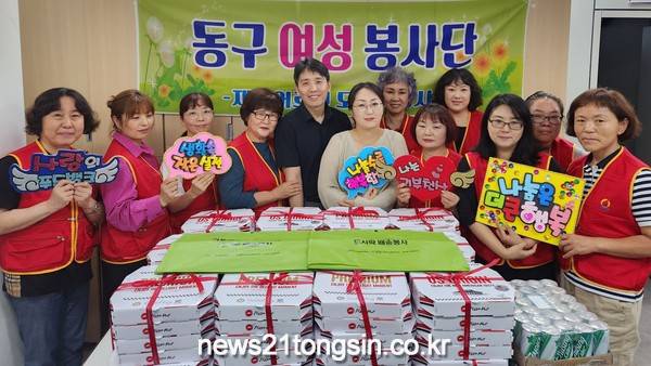 (뉴스21통신/임정훈기자) = 동구여성봉사단(회장 박정숙)은 7월 18일 오후 1시 지역에 필요한 곳에 전달해 달라며 울산동구자원봉사센터에 미니피자 70판을 기부하였다.