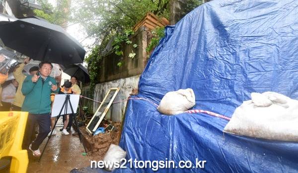 현장을 방문한 유정복 시장은 “외벽 등 붕괴 원인을 파악해 주민들이 불안하지 않고 2차 사고가 발생하지 않도록 사고 현장을 신속히 복구해달라”고 주문하며 “이번 집중호우로 지반이 약해져 있고, 시설물 등 붕괴 우려가 높아진 만큼 사고 재발 방지를 위해 주민들이 신고한 지역 등 취약지역에 대한 예찰을 더욱 철저히 해달라”고 지시했다.