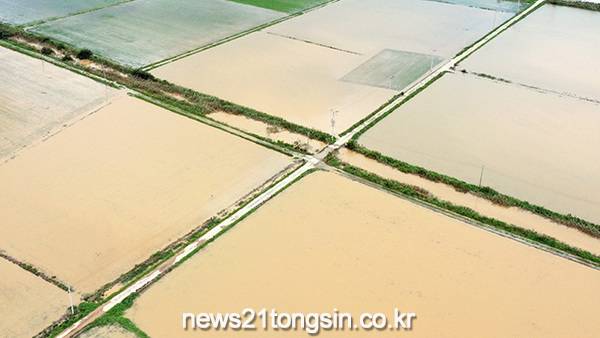 농림축산식품부 집계 결과, 지난 10일 이후 오늘(20일)까지 농경지 3만 4천583ha가 침수나 낙과 피해를 입었다.