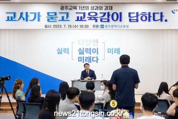 [뉴스21통신/장병기 기자] 광주시교육청이 지난 19일 시교육청 대회의실에서 100명의 교사와 함께하는 ‘교사가 묻고 교육감이 답하다’ 행사를 실시했다.