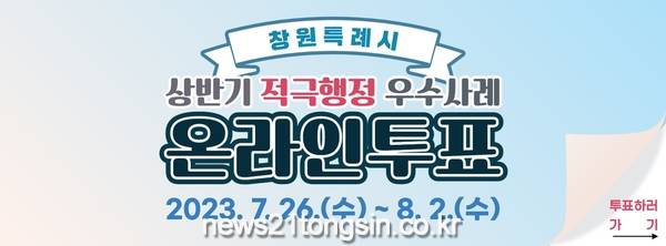 창원특례시(시장 홍남표)는 7월 26일부터 8월 1일까지 2023년 상반기 적극행정 우수사례를 선발하기 위해 창원시청 홈페이지에서 온라인투표를 진행한다고 밝혔다.