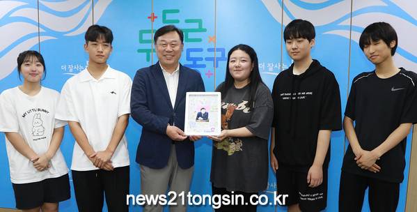 청소년들은 “지역 청소년들과 꾸준히 소통하고 아낌없는 지원을 해주셔서 감사하다”며 직접 만든 감사장을 김종훈 동구청장에게 전달했다.