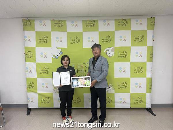 (재)강원세계산림엑스포조직위원회(조직위원장 김진태)는 엑스포 성공개최를 위해 7월 26일 오후 3시 조직위원회 사무실에서 산악인 김영미 씨를 홍보대사로 위촉하였다.