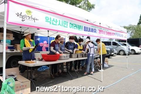 경주시는 자매도시 익산의 수해 소식을 듣고 앞서 1만5천개의 생수지원에 이어 도움의 손길을 건내고자 사랑의 밥차를 준비해 중식 제공에 나서 그 의미를 더했다.