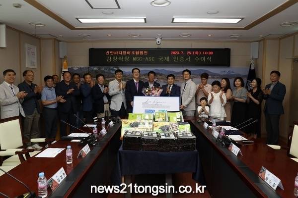 신안군은 최근, 신안군청에서 신안바다영어조합, 해양관리협의회(MSC KOREA), 풀무원식품 등이 참여한 가운데 ASC-MSC 국제인증서 전달식 행사를 가졌다.