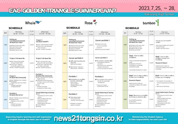 캠프에 참가한 한 학생은 “이번 EAC 골든 트라이앵글 캠프 참여로 영어에 대한 자신감이 생겼고, 챗지피티를 이용한 진로 로드맵 프로그램에 참여해 다양한 경험을 쌓았다”며 “특히 프로젝트 수업은 팀원 간 협동심과 제 역량을 높일 수 있었던 즐겁고 유의미한 경험이었다”고 말했다.