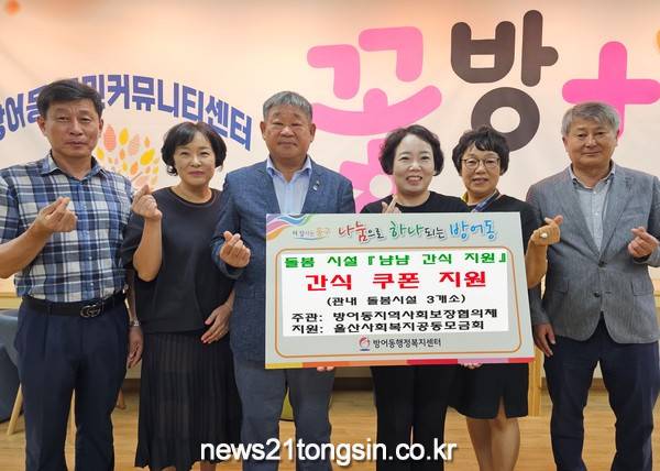 (뉴스21통신/임정훈기자) = 울산 동구 방어동 지역사회보장협의체(위원장 이병태)는 7월 27일 사회복지공동모금회 후원으로 관내 돌봄 시설 이용 아동·장애인을 대상으로 간식을 지원하는 ‘냠냠 간식 지원’ 사업 전달식을 진행했다.